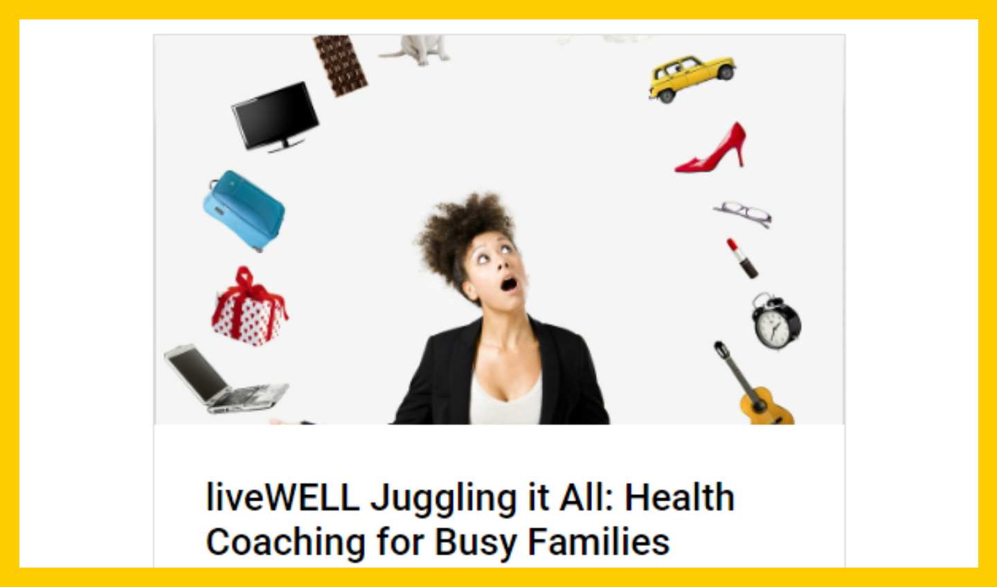 The route for the march and the full schedule for the Iowa City Pride Festival is available at iowacitypride.org. | | | | liveWELL Training - Juggling it All: Health Coaching for Busy Families Juggling work and family life can be overwhelming and our own needs can too easily be put on the back burner. Attend this three-part Zoom series to identify quick wins for self-care and emotional well-being.