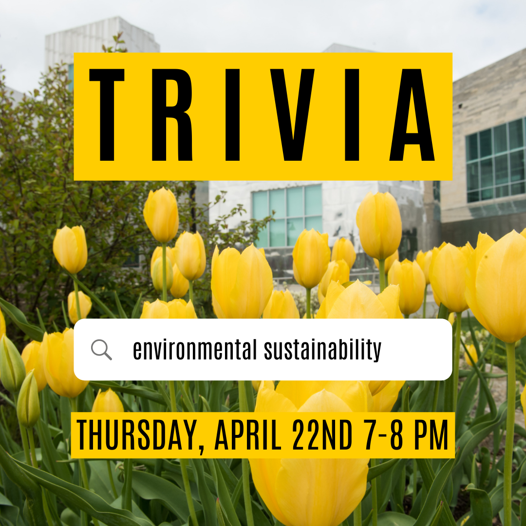 Want to learn more about sustainability while having some fun? Come to our trivia night to show off your sustainability knowledge! The trivia will be via Zoom on Thursday, April 22 from 7 PM to 8 PM. Register HERE. We hope to see you there!