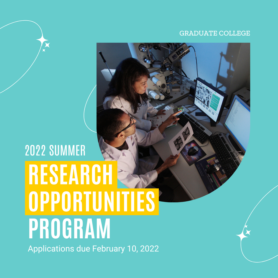 The Graduate College invites you to apply for the 2022 Summer Research Opportunities Program, an immersive 8-week program filled with professional development, preparation for graduate school applications, and research. Students will be paired with faculty mentors to work on projects close to their academic interests and present their work at the Summer Undergraduate Research Conference. Applications will open on November 1 and close on February 10, 2022. Click HERE for more information or contact Grad DEI Coordinator, Jackie Chu, at grad-srop@uiowa.edu.